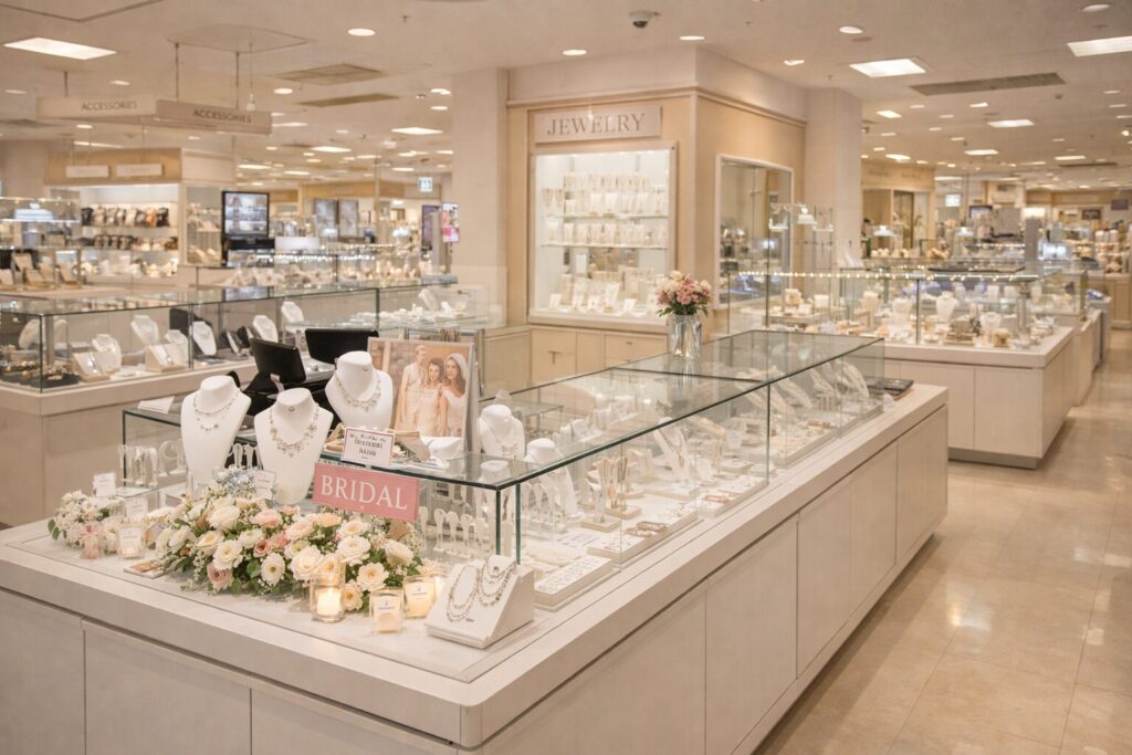 アクセサリーを購入する場合、入手先の選択肢は幅広く、市販のセレクトショップ・百貨店・ブライダル専門店・オンラインショップの4系統に分けられます。目的やこだわりによって、最適な購入ルートを選ぶことが大切です。
